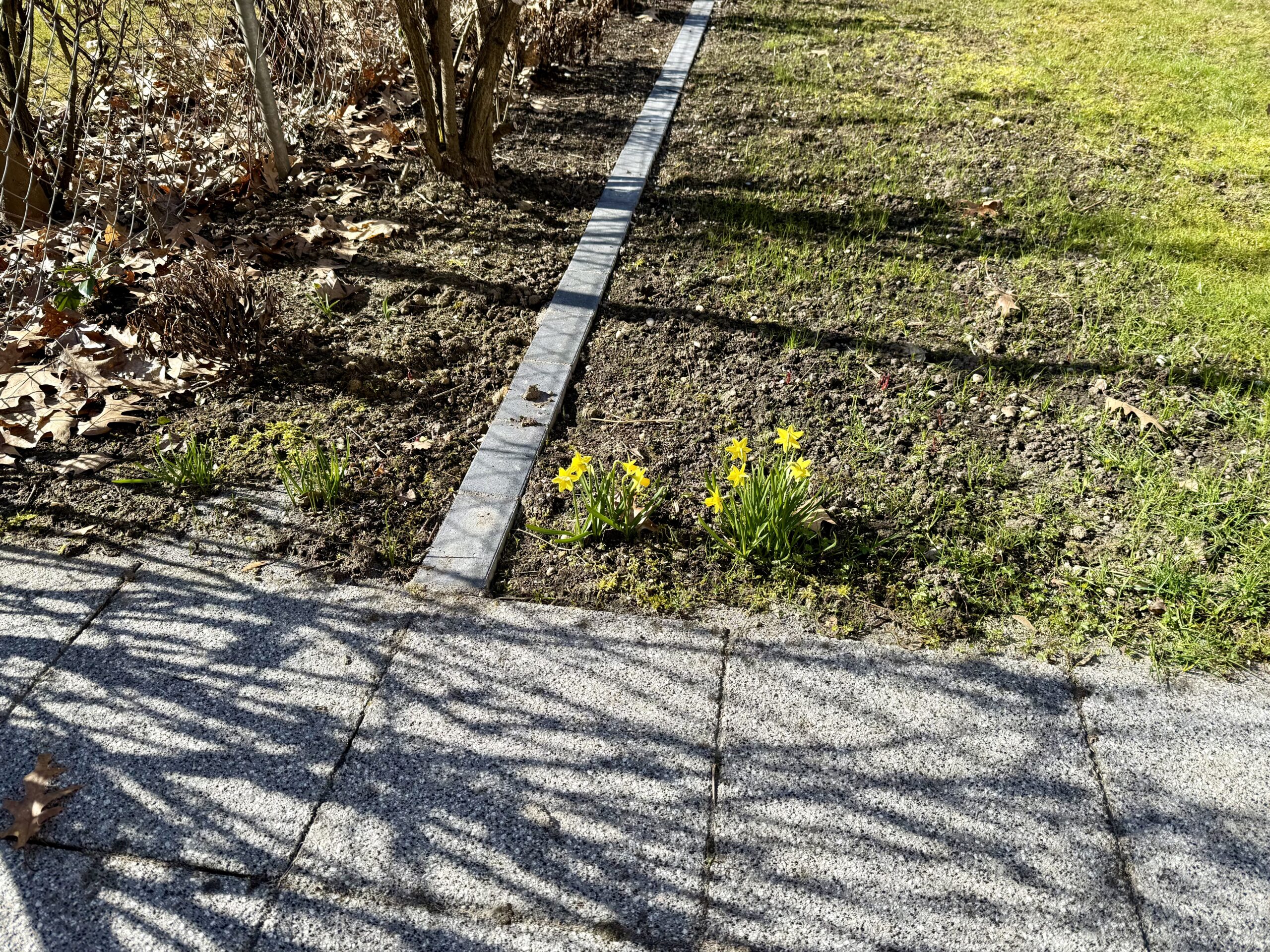 Da die Gärtner letzten Herbst meine ausgewilderten Blumenzwiebeln dringelassen haben, blühen auch die Narzissen wieder; die Hyazinthen links hingegen haben mal wieder nicht so recht Lust: