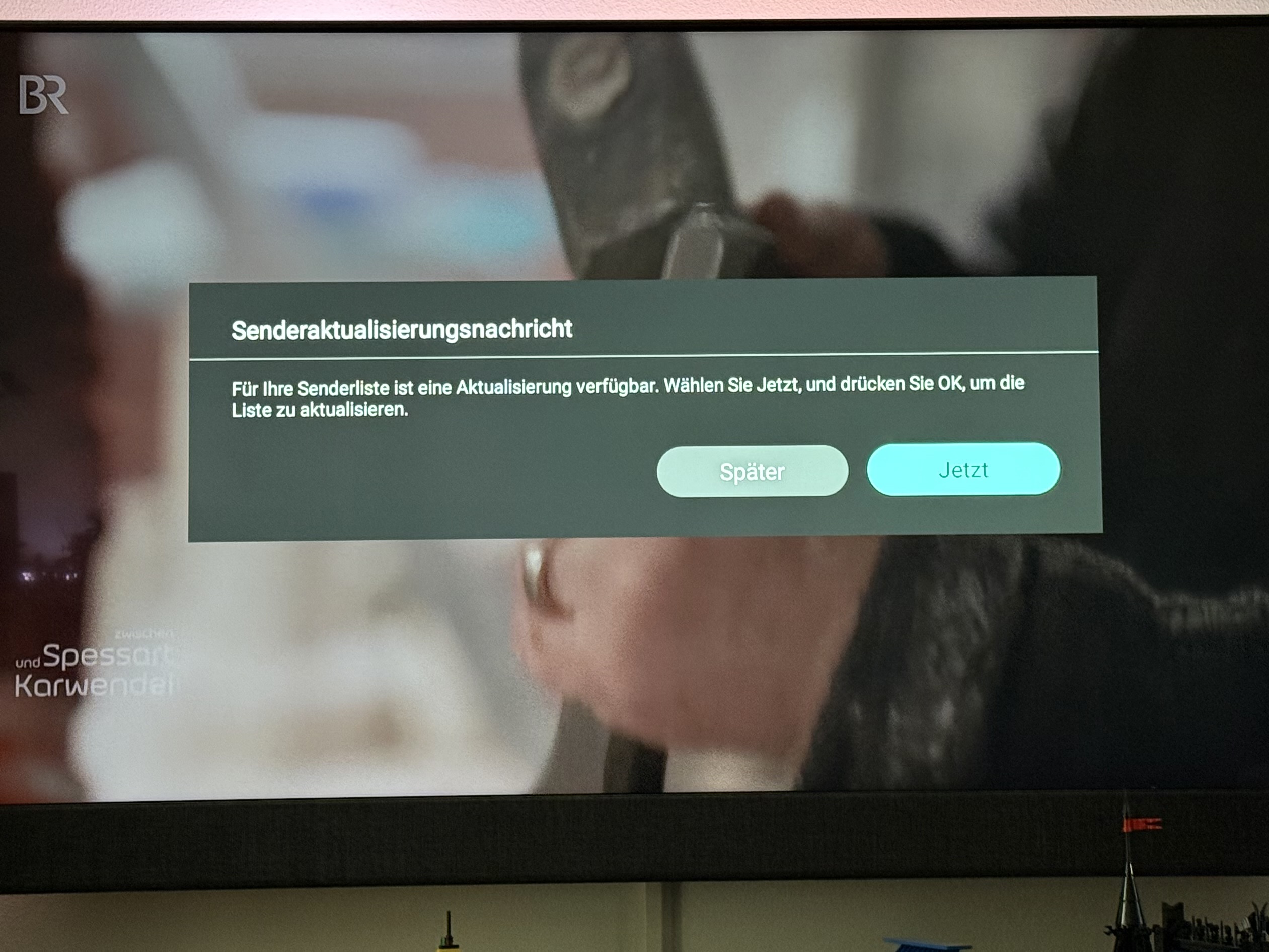 Dann etwas gehobene Literatur (zumindest in der Hand hochgehoben), und später meinte der Fernseher mal wieder, es wäre lustig, auf eine Senderaktualisierung hinzuweisen, beim Suchlauf keine Änderung zu finden und gleich nochmal zu fragen:
