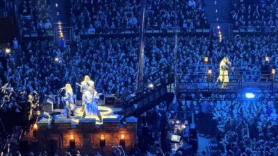 Die Leute, die in der Mitte unter der Brücke standen, werden auch froh gewesen sein, dass die nach dem zweiten Lied wieder hochgezogen wurde und später nur noch zweimal kurz zum Einsatz kam…