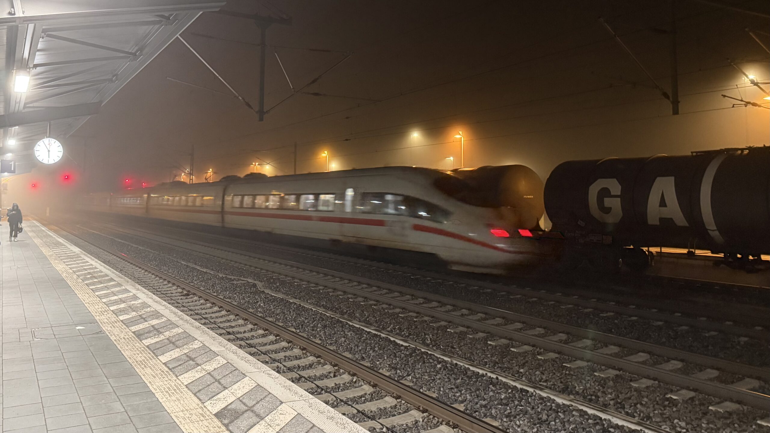 Die Bahn auf der Hinfahrt war aus ungenannten Gründen 5 Minuten zu spät hier und stand dann im nächsten Bahnhof noch 15 weitere wegen ärztlicher Versorgung eines Fahrgasts; ein Rettungswagen kam dann auch und fuhr bald wieder ab, anscheinend (wenn ich das von Leuten richtig mitbekommen habe, die auf der passenden Seite am Fenster saßen) mit einem neuen Patienten im Rollstuhl. Immerhin 5 Minuten weniger als zunächst geschätzt; am Ende mit +19 in München.