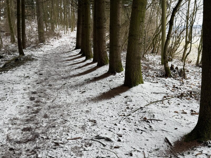 Wenn noch etwas Dunst im Wald hängt – oder durch die Sonneneinstrahlung wieder entsteht – ergibt sich eine interessante, schöne Stimmung: